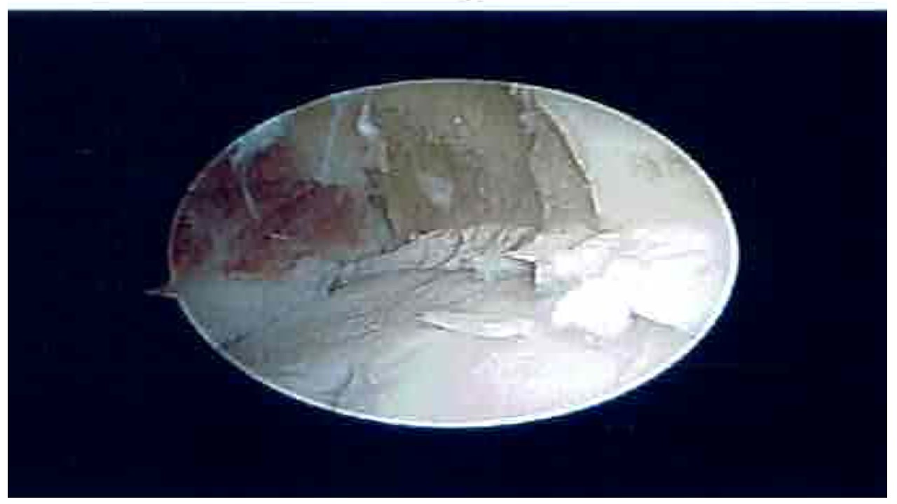 Before and after pictures of an anterior ankle bone-spur removed with an arthroscopic burr.